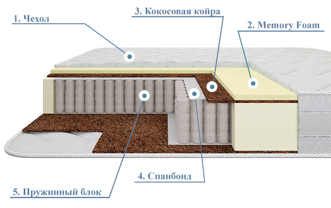 Кокосовая койра, Ортопена, Пена мемори, Спанбонд