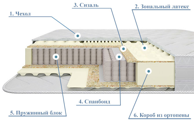 6. Короб из ортопены. Современный вспененный прочный и эластичный материал по всему периметру матраса помогает сохранить форму на протяжении всего срока эксплуатации. Защищает чехол от пружин..